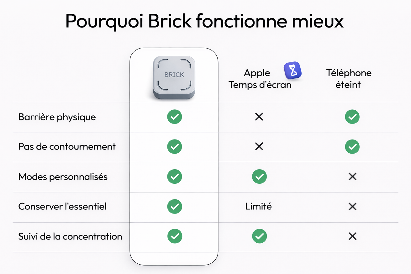 En quoi Brick est-il différent du Temps d’écran d’Apple ou du Bien-être numérique d’Android ?
